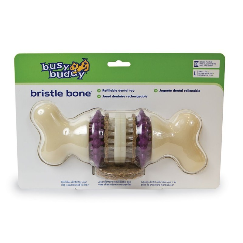 Busy Buddy Bristle Bone er et fantastiske stykke aktiverings legetøj der er lavet i holdbart nylon og er en udfordring til din hund,.