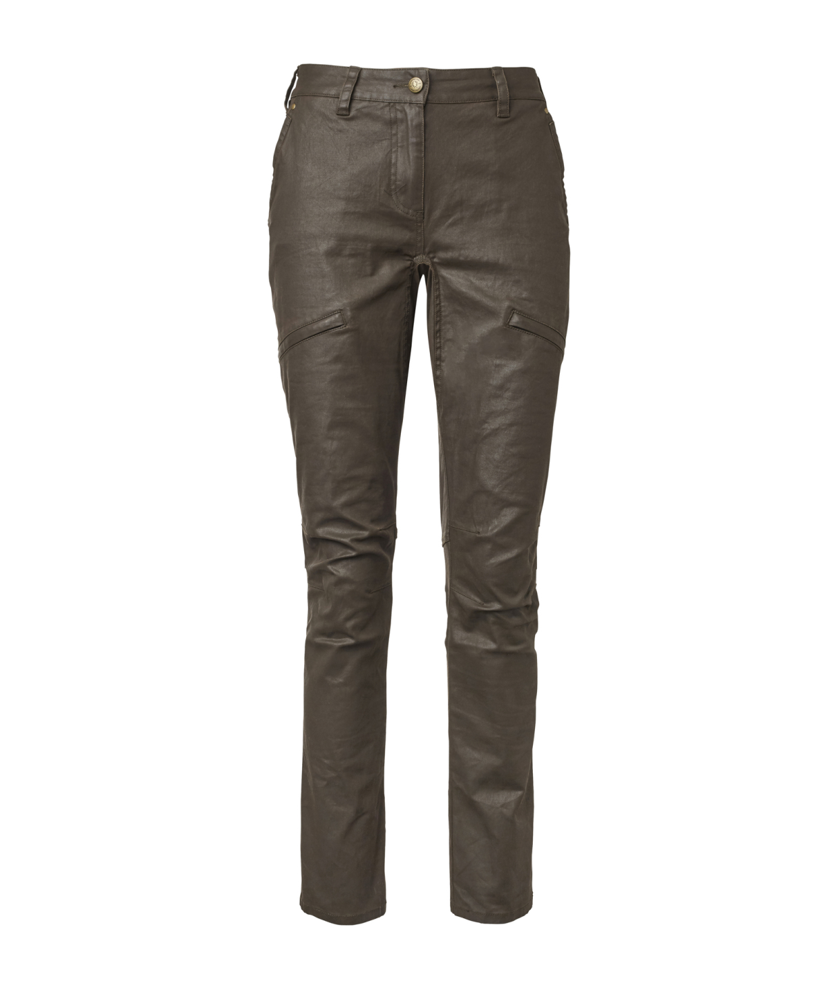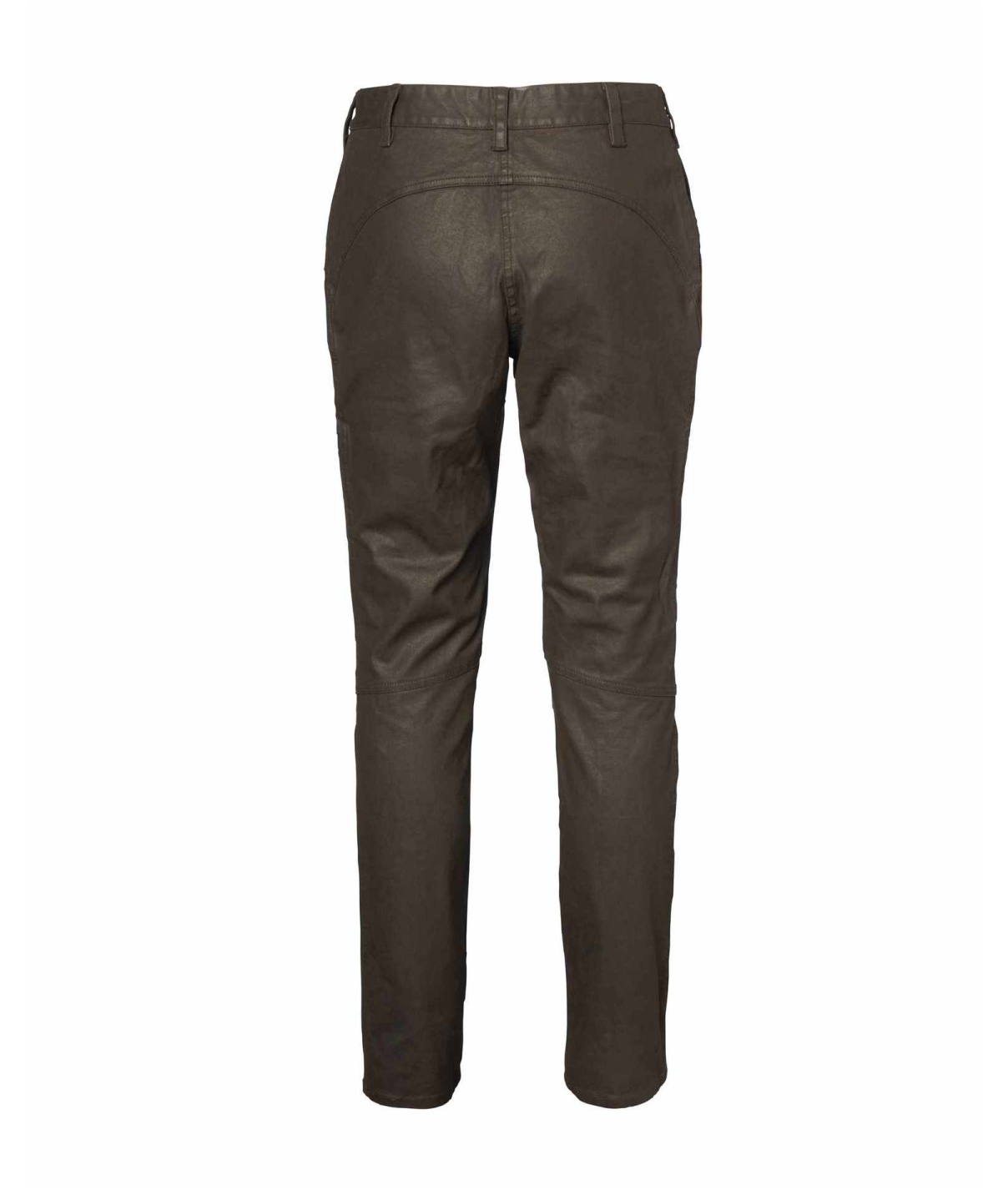En ryg med det klassiske Chevalier saddleback-snit og lige ben. Til opbevaring er der to diskrete benlommer med lynlås samt to jeanslommer med forstærkede åbninger. Alt vores Vintage-tøj er lavet af et vokset, elastisk bomuldsstof. Den elastiske talje med bæltestropper og de formsyede knæ giver optimal pasform og fleksibilitet
