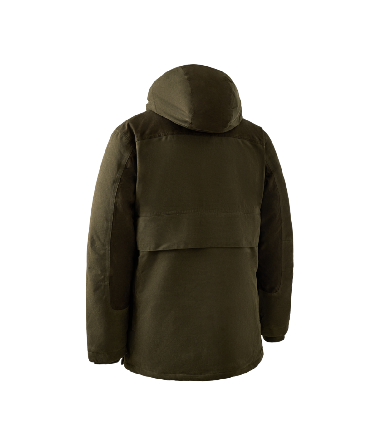 En Deer-Tex Performance Shell membran er lamineret på bagsiden af den ydre metervare og tapet i alle sømme, hvilket gør den 100% vandtæt. Denne membran udmærker sig ved at være meget let, og den bliver derfor brugt til DEERHUNTERs mere tekniske produkter.