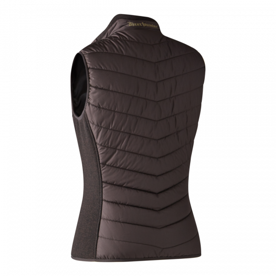 De strikkede kontrastpaneler langs siderne og skuldrene giver en kropsnær pasform og ekstra komfort, mens vatteringen foran og bagpå gør den varm og vindtæt.