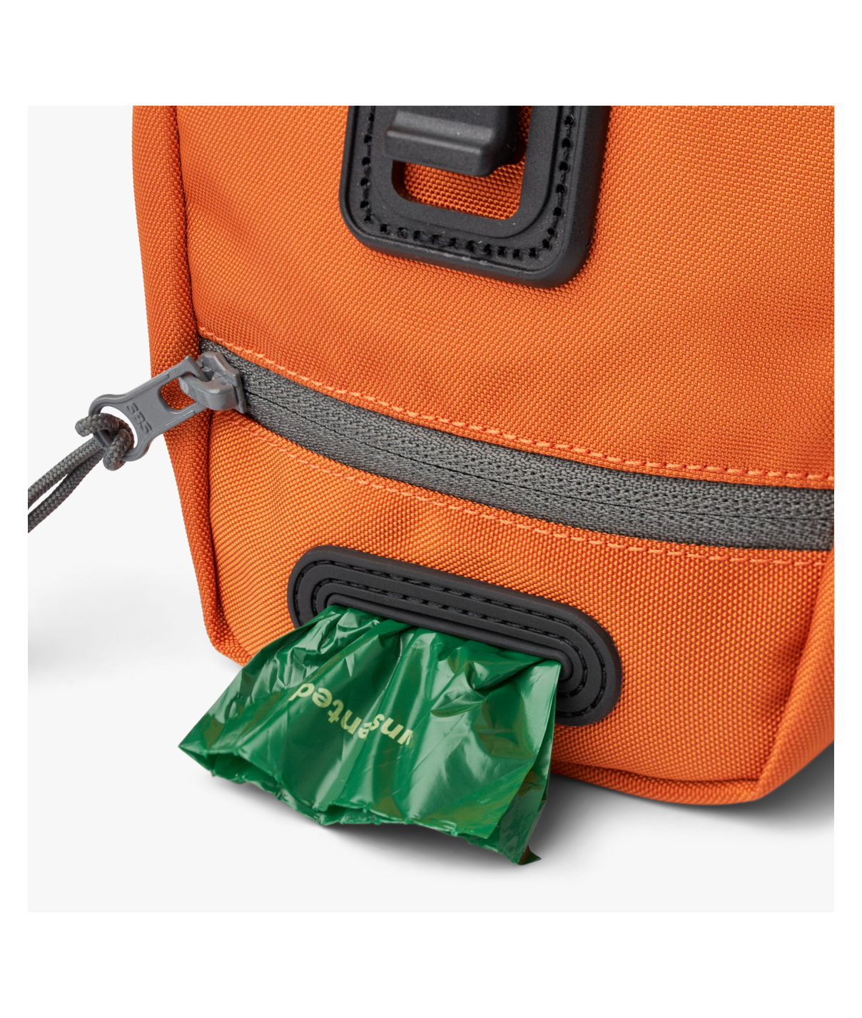 Det sikre magnetiske lukkesystem giver hurtig adgang til godbidder, og den indbyggede dispenser holder hundeposer klar til brug.