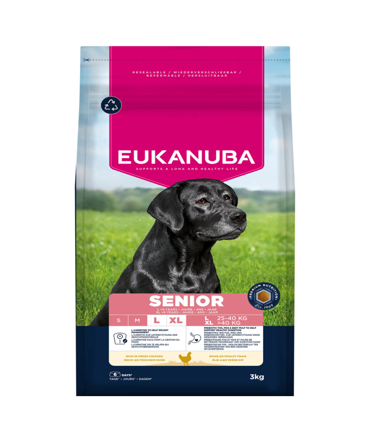 Foderet er 100% komplet og afbalanceret. Avanceret ernæring til ældre hunde af store racer for at understøtte en sund krop og livslangt velvære.
