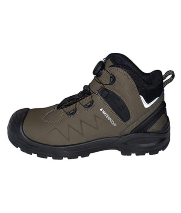 Overlæderet i nubuck giver støvlen et elegant udseende, mens den kraftige gummisål sikrer skridsikkerhed, antistatisk beskyttelse og olieafvisning.