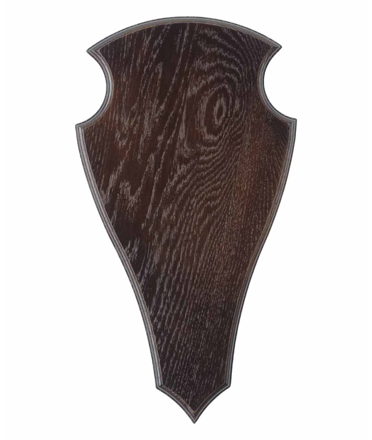 Hjorteplade i mørk bejdset egetræ med spids bund.