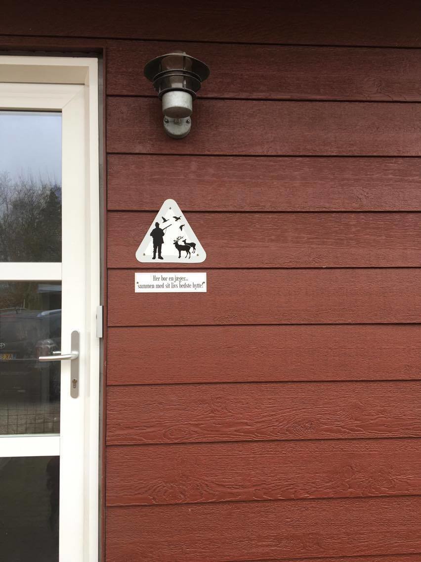 Skiltet er med folie moteret på 2 mm. alu. sandwichplade med huller i for montering.