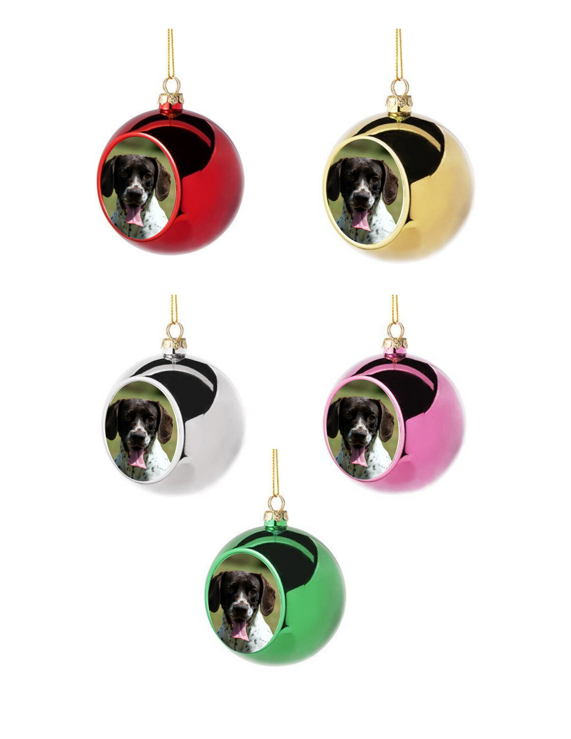 Kuglen måler Ø6 cm. og fås i grøn, blå, rød, sølv og guld.