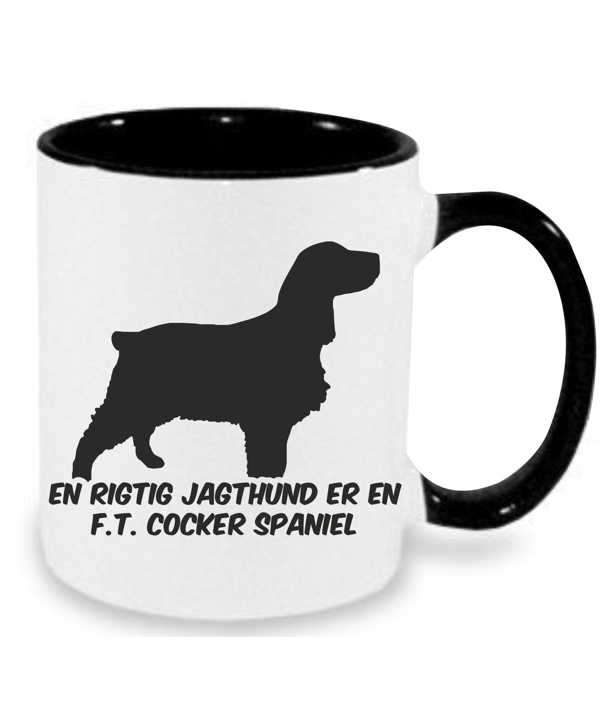 Hvidt krus i 33 cl. med flot print af F.T. cocker Spaniel.