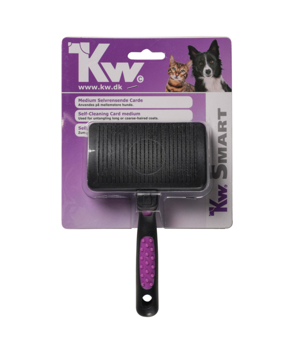 Den skridsikre håndtag sikrer et godt greb under børstningen, så du kan arbejde effektivt og komfortabelt, selv ved længere plejeseancer. Uanset om du har en hund eller kat med lang pels, krøller eller ruhår, så er KW bløde børste et uundgåeligt værktøj til din pleje-rutine.