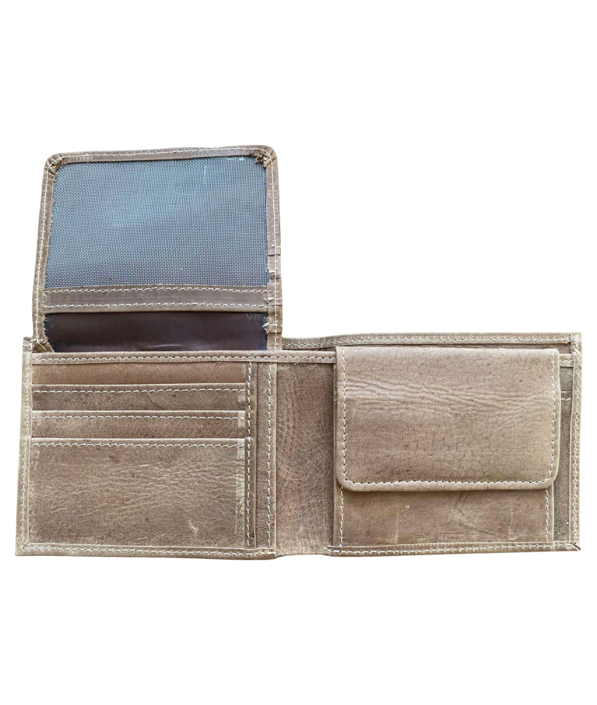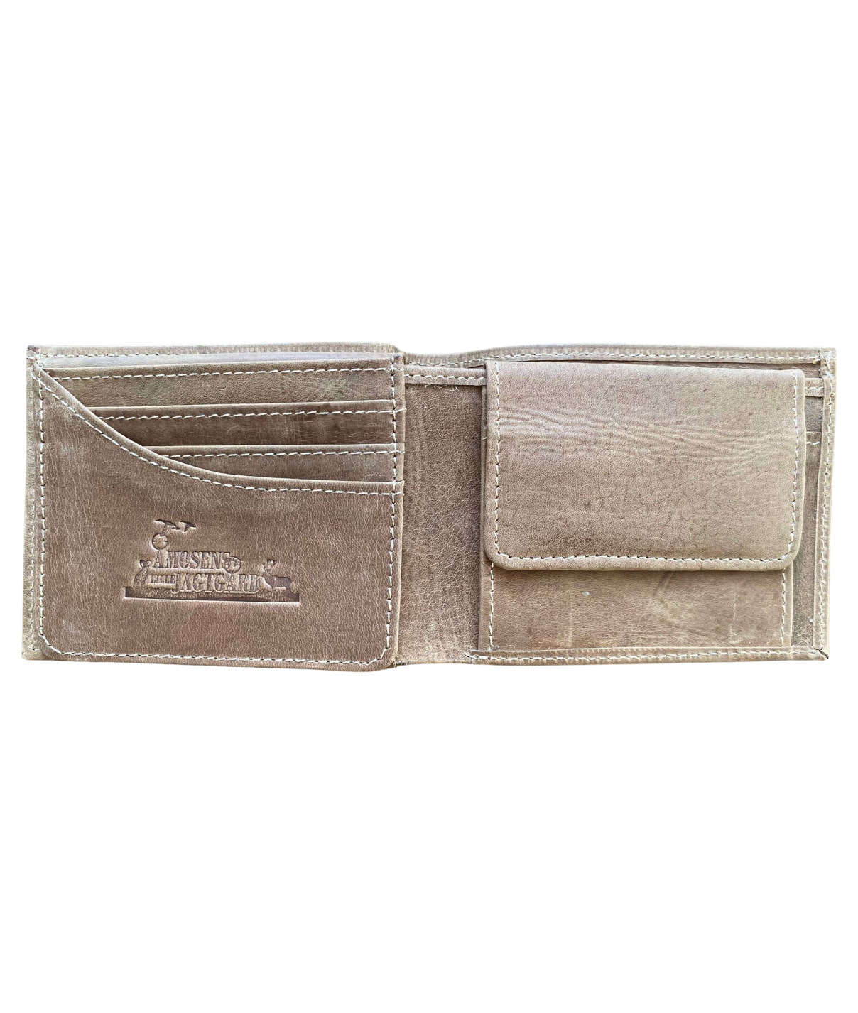 Flot læderpung med motiv præget, lyse stikninger og med plads til 10 kort,
