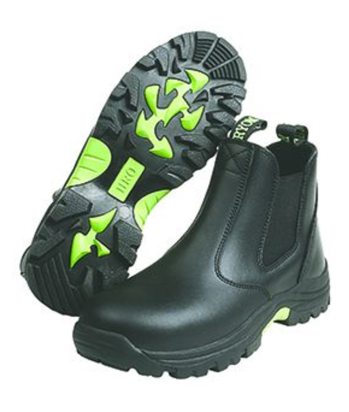 Lækker kort sort skindstøvle med stålkappe og sømværn.
