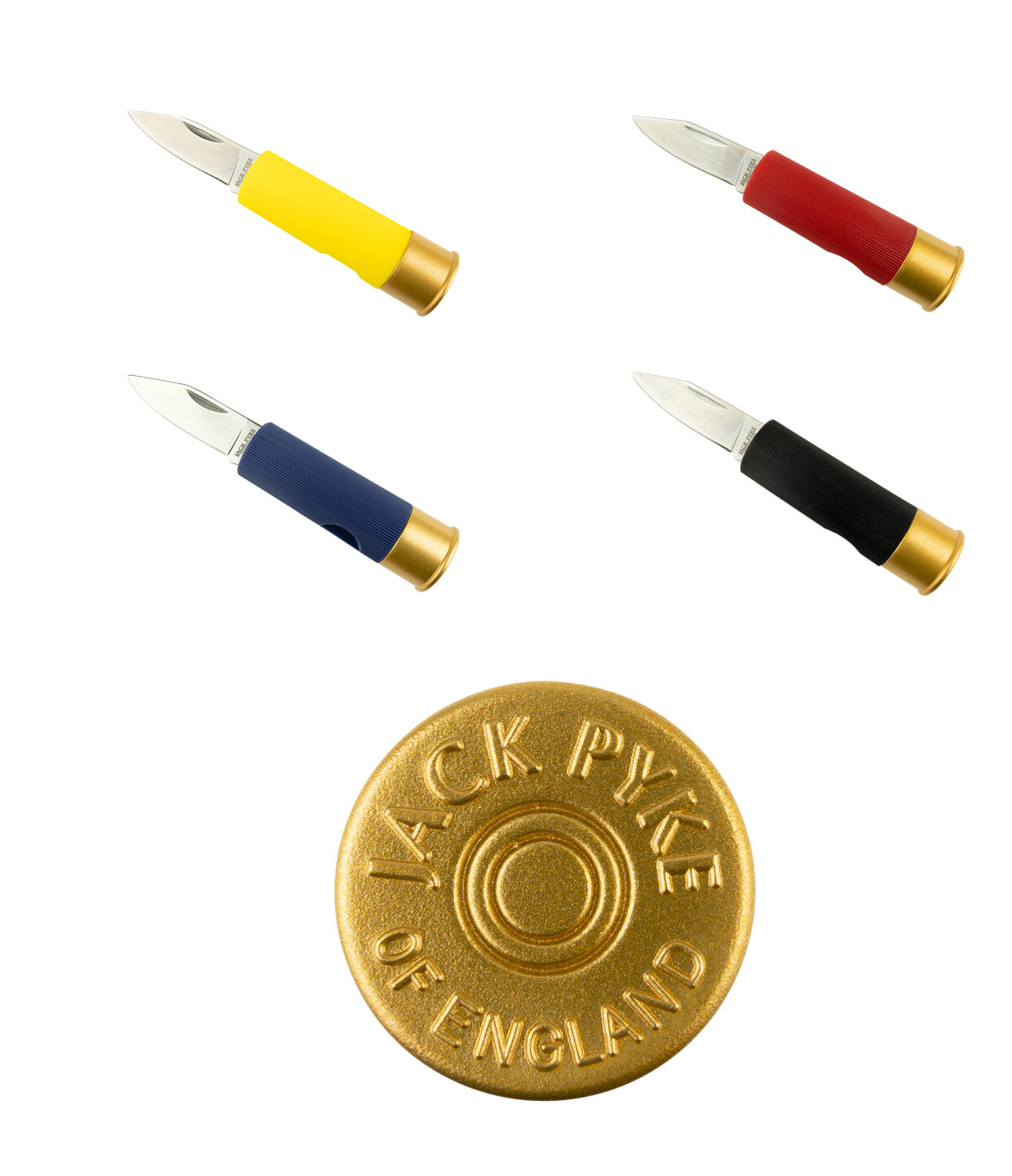 Sjov lille kniv formet som en haglpatron, bladet kan foldes sammen og måler 3,8 cm.