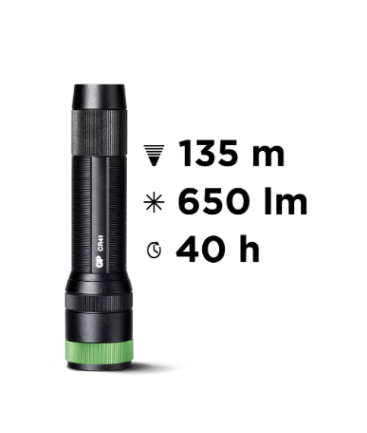 Med en højtydende LED-lampe leverer CR41 en imponerende lysstyrke og en stråleafstand, der effektivt kan lysne op til 135 meter.