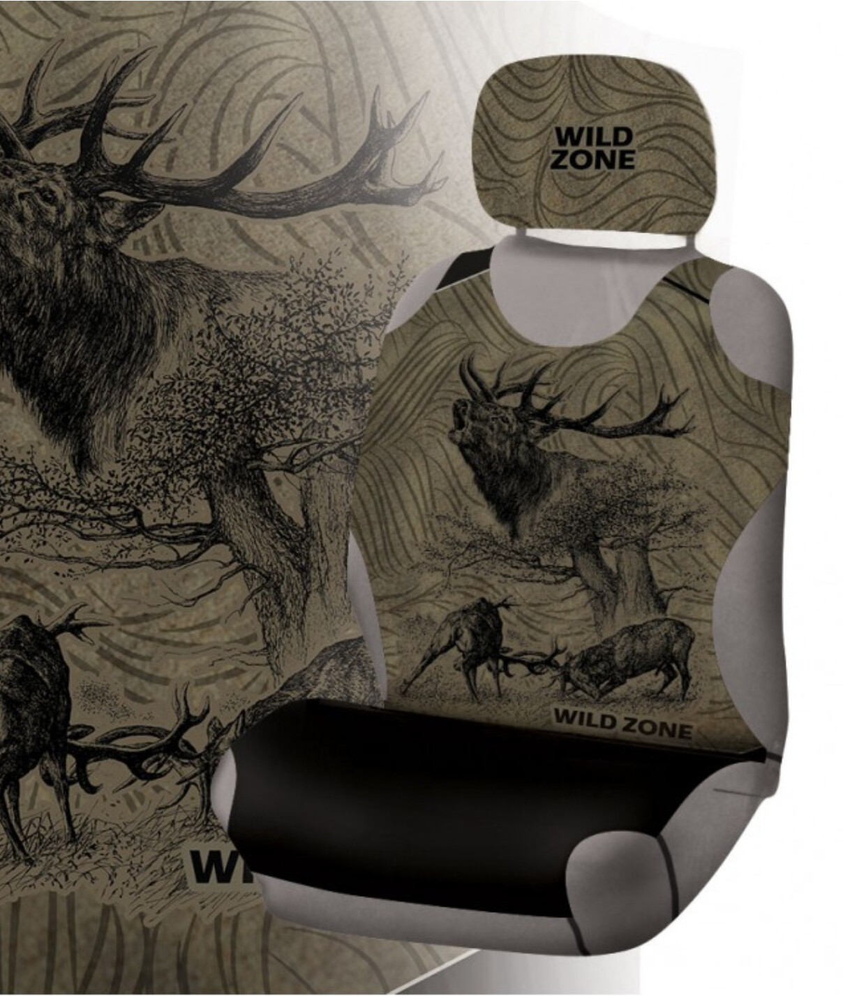 Sædeovertræk med flot print af Kronhjort i lyse nuancer.
