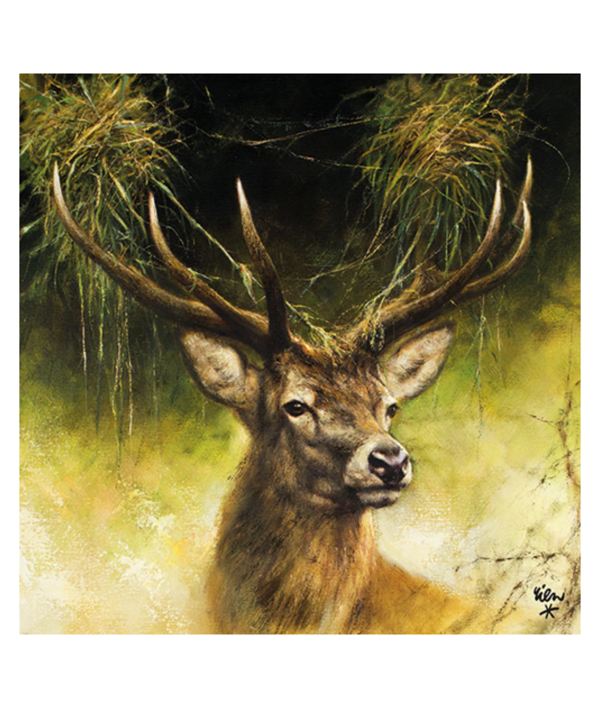 Tilføj et rustikt og elegant præg til dit bord med disse smukke servietter, prydet med et detaljeret print af en majestætisk kronhjort.