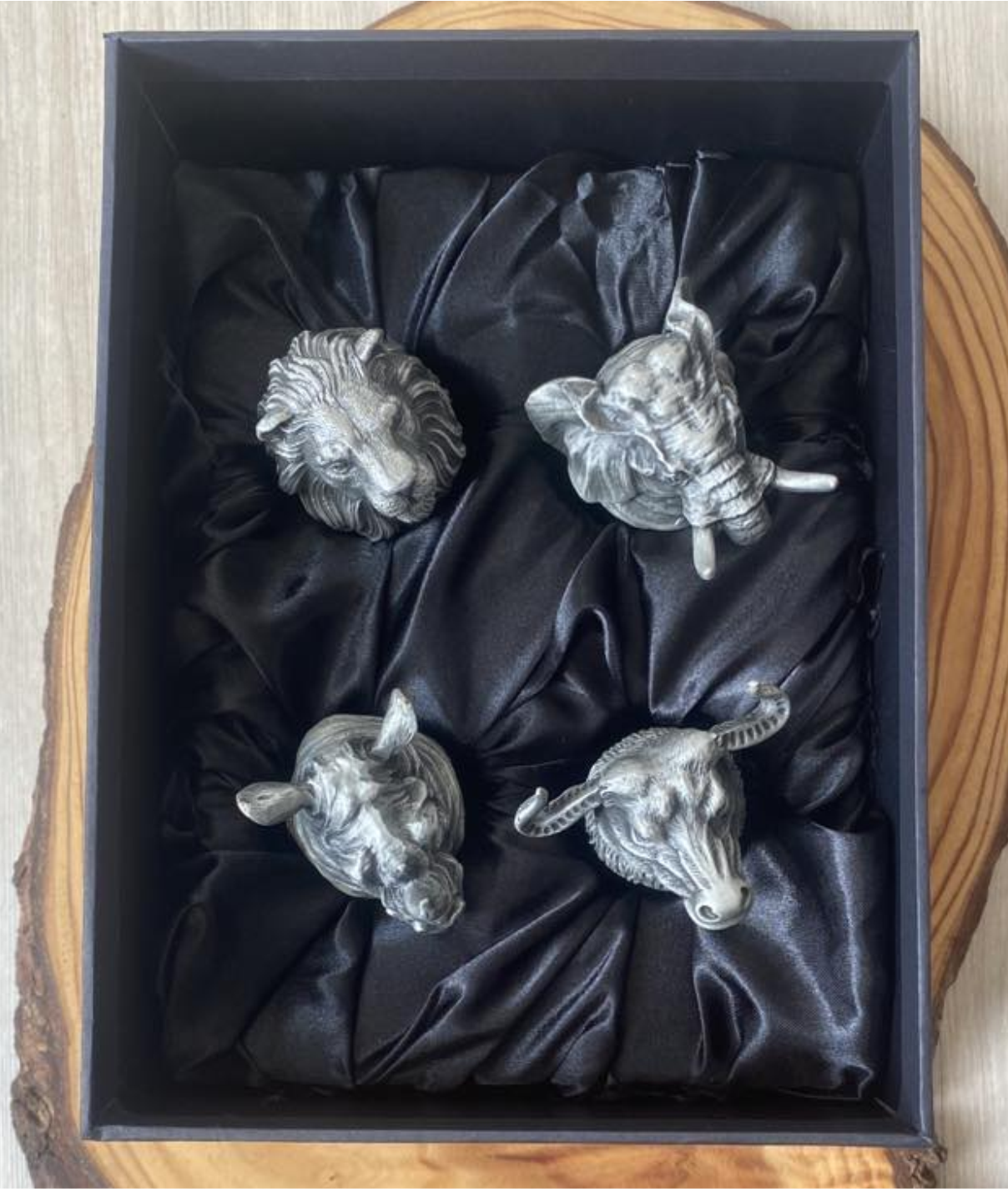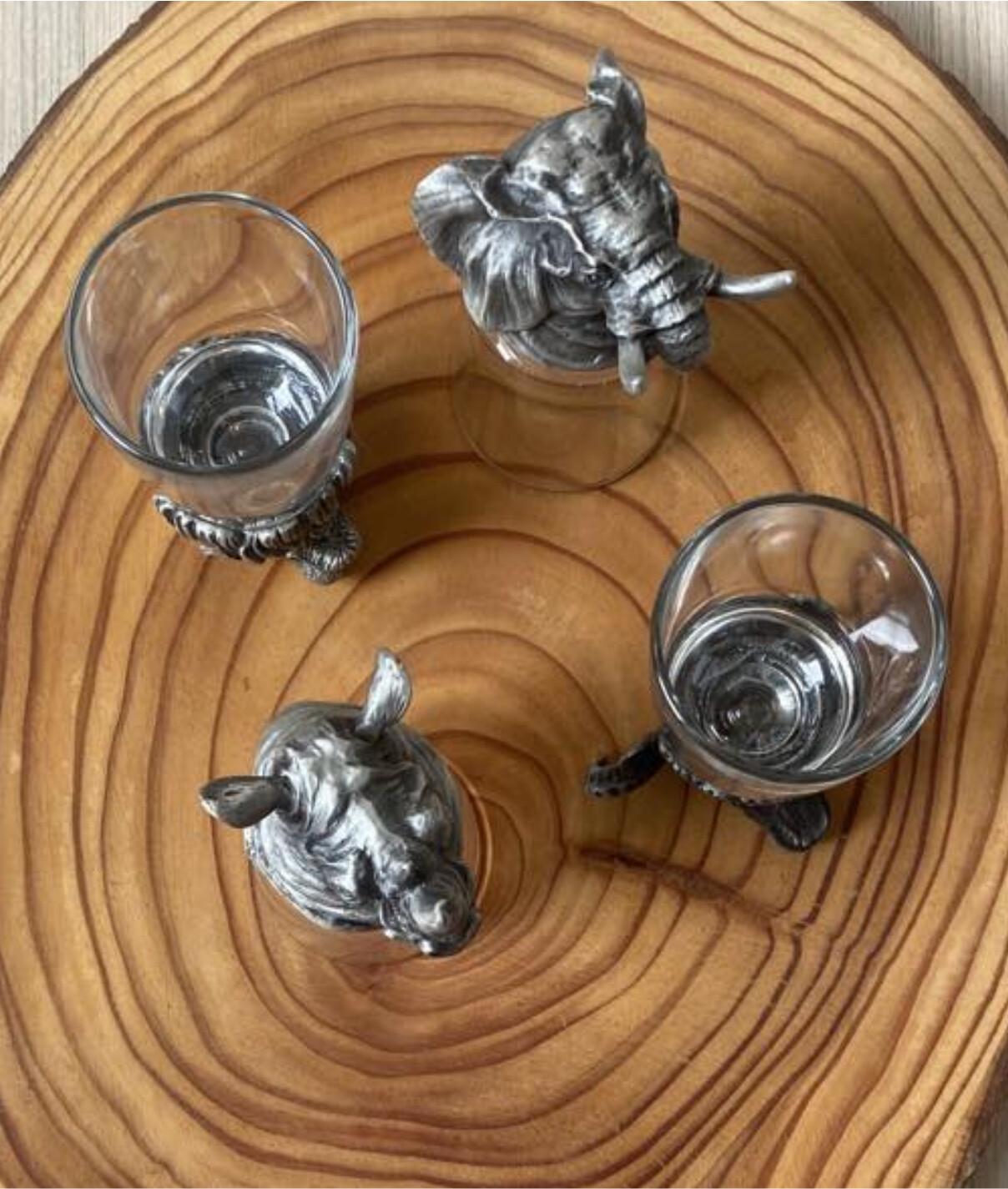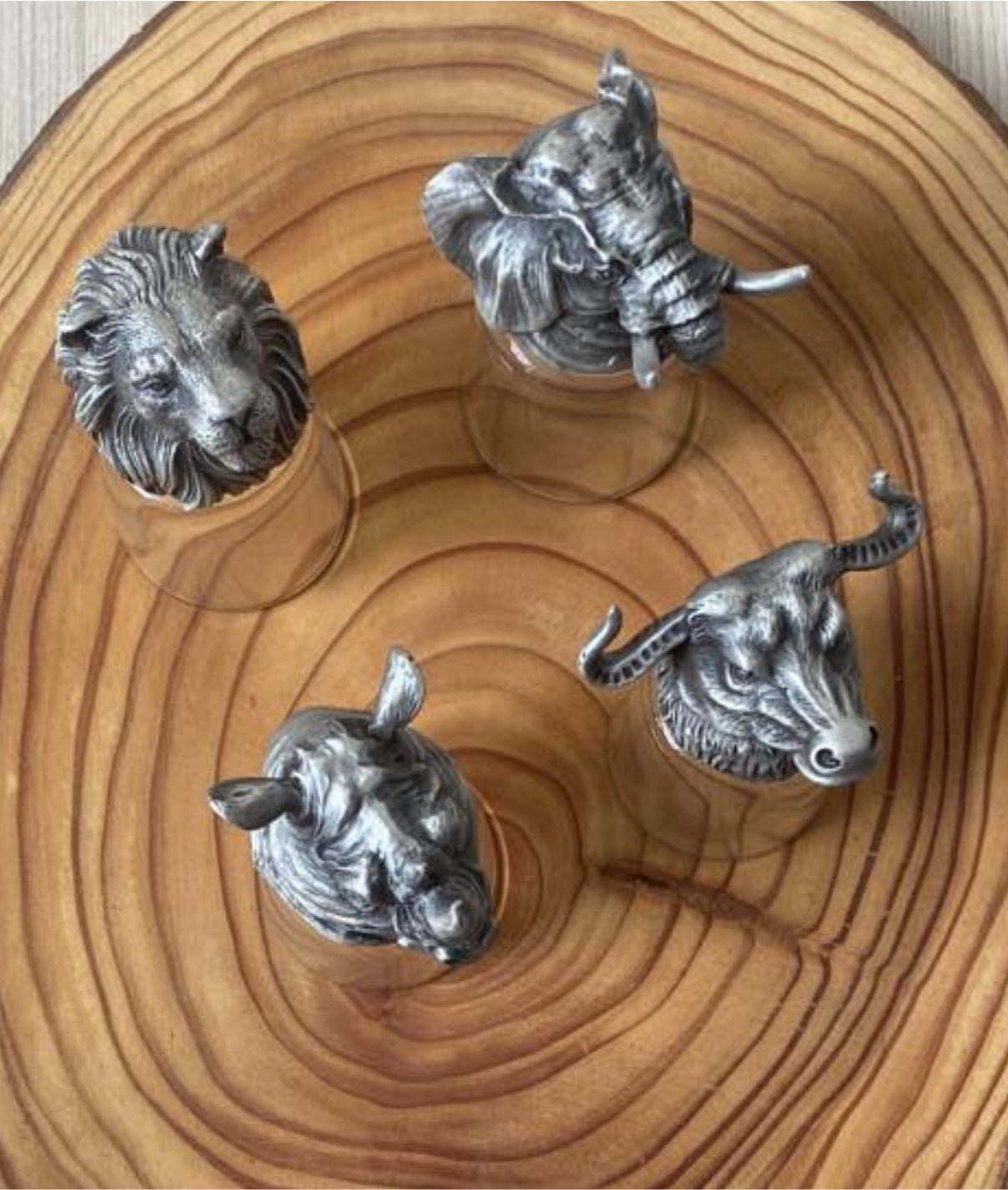 Shots glas med dyremotiv – Løve, Elefant, Bøffel og Næsehorn