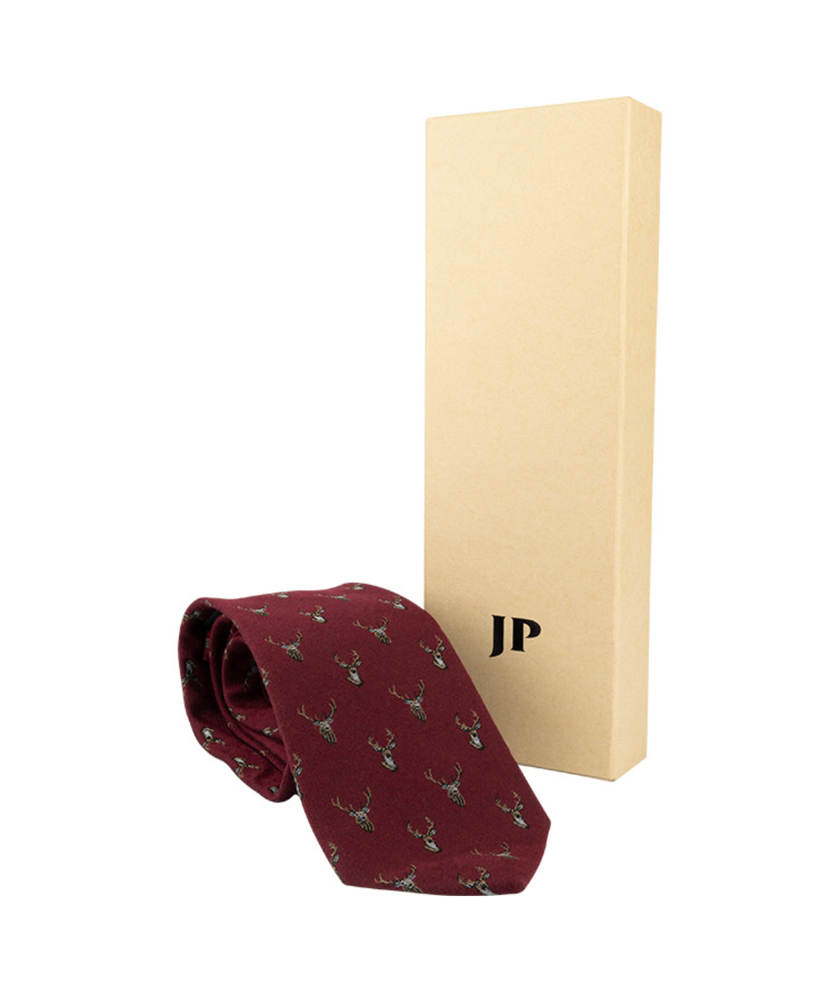 Et klassisk silkeslips med motiv af Kronhjorte.