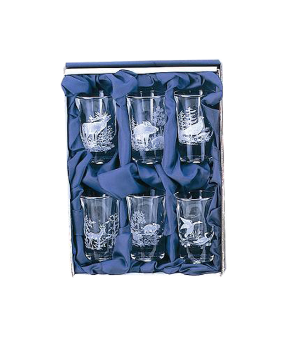 Forkæl dig selv eller dine gæster med vores eksklusive snapsglas, der er smukt graveret med vildtmotiver af hare, hjort, rådyr, vildsvin, fasan og and. Disse glas kombinerer elegance med en dyb respekt for naturen, hvilket gør dem til et perfekt valg til både hverdag og særlige lejligheder.