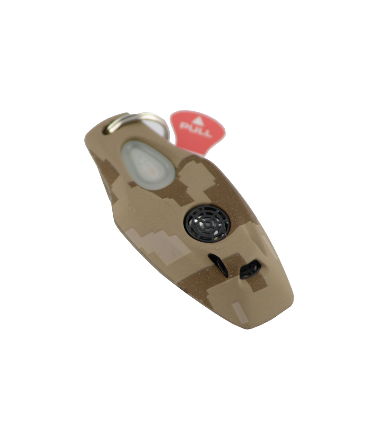 Fastgøres med en karabinhage eller en snor gennem ringen; kan også fæstes i klipsen.
